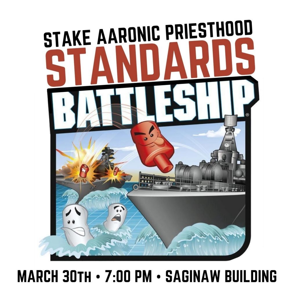 We will be holding a Stake Aaronic Priesthood Standards activity on Wednesday March 30th at 7pm at the SAGINAW building. The activity is for Teacher and Priest age young men. We ask for there to be at least one adult leader from each ward to attend.